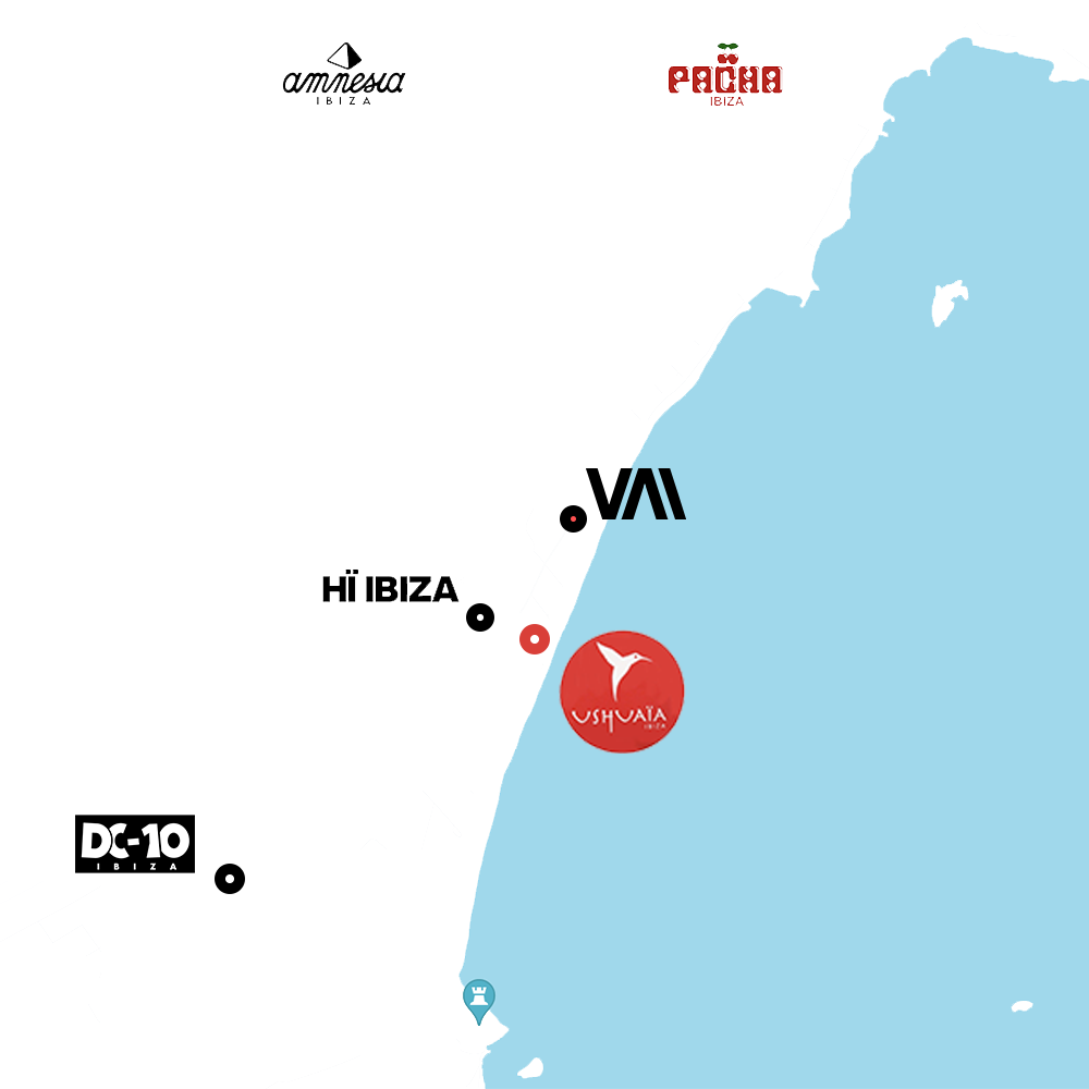 I nostri alloggi solo nel centro di Playa D'en Bossa, e se non siete pratici di Ibiza, siamo esattamente nel centro della Movida! come potete vedere siamo a 5 minuti a piedi dai due locali più famosi, Hï e Ushuaïa, a 10 minuti dal DC-10, e a pochi minuti in macchina dal Pacha e Amnesia